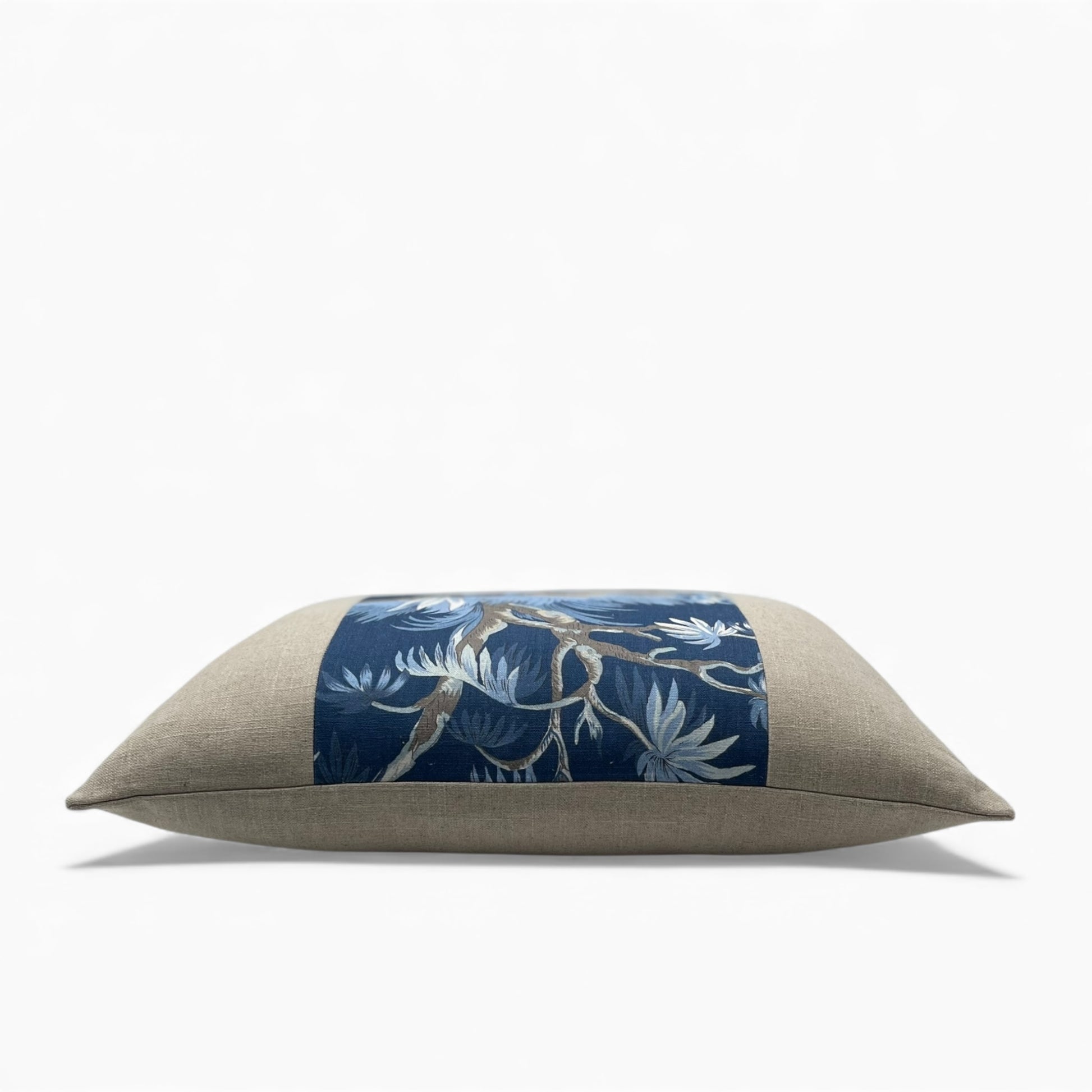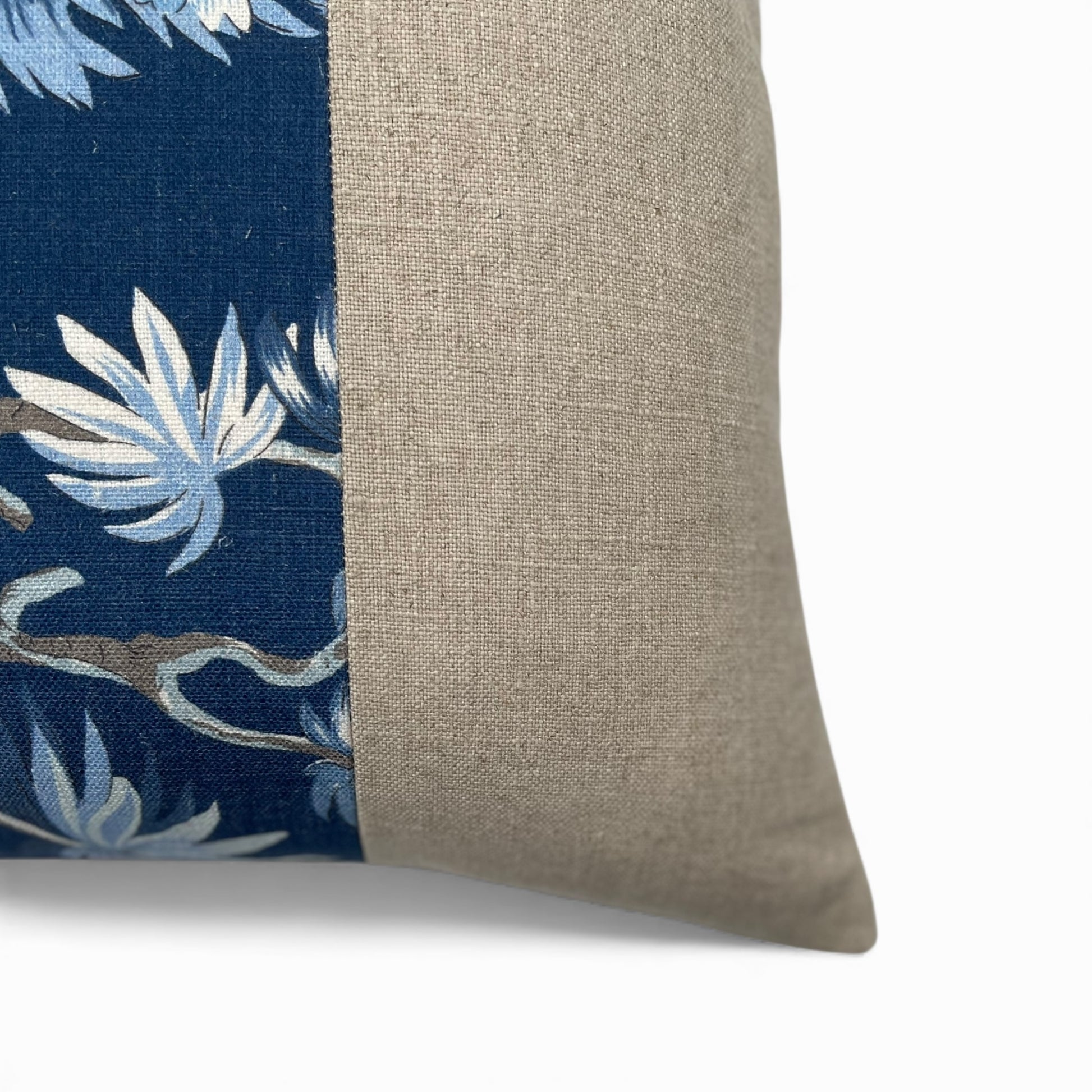 Pillow made with blue Anna French fabric and Italian linen